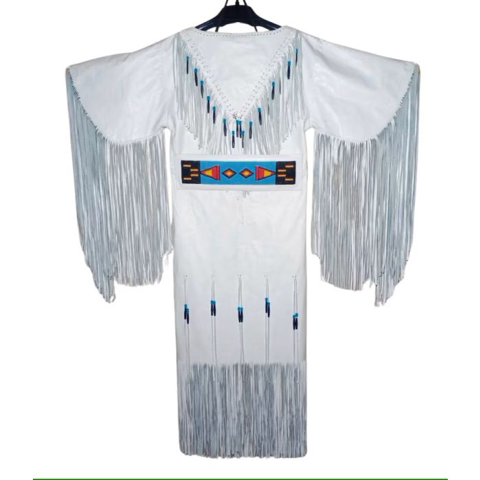 Step into a legacy of elegance, strength, and timeless beauty with our handcrafted Native Buckskin Suede Leather Wedding Dress. Inspired by indigenous traditions and the natural world, this one-of-a-kind gown blends cultural heritage with bridal sophistication.