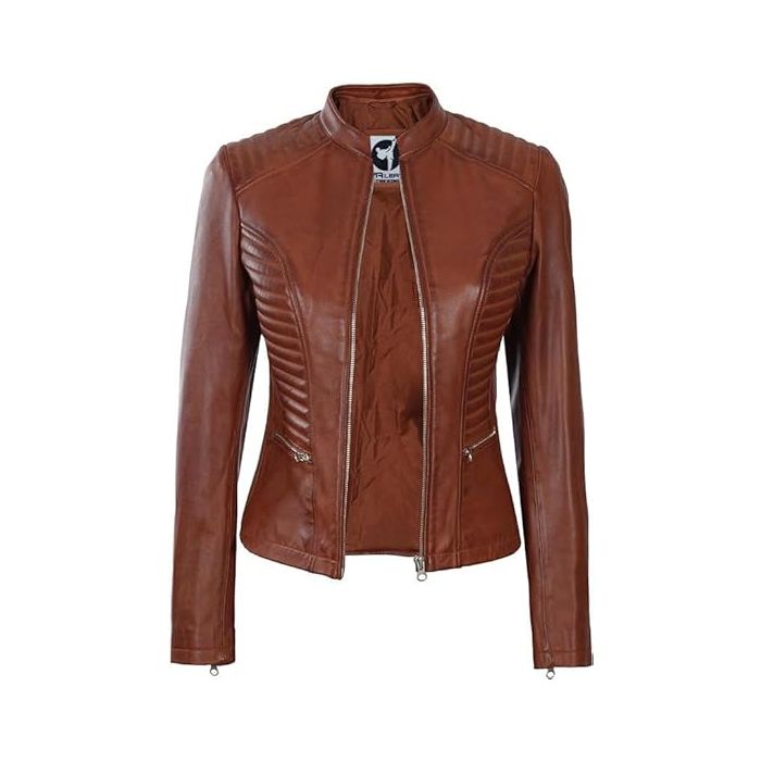 Crafted from 100% real lambskin leather. It is lined with foam polyester interior lining for enhanced comfort. this brown jacket women offers a durable yet soft feel.