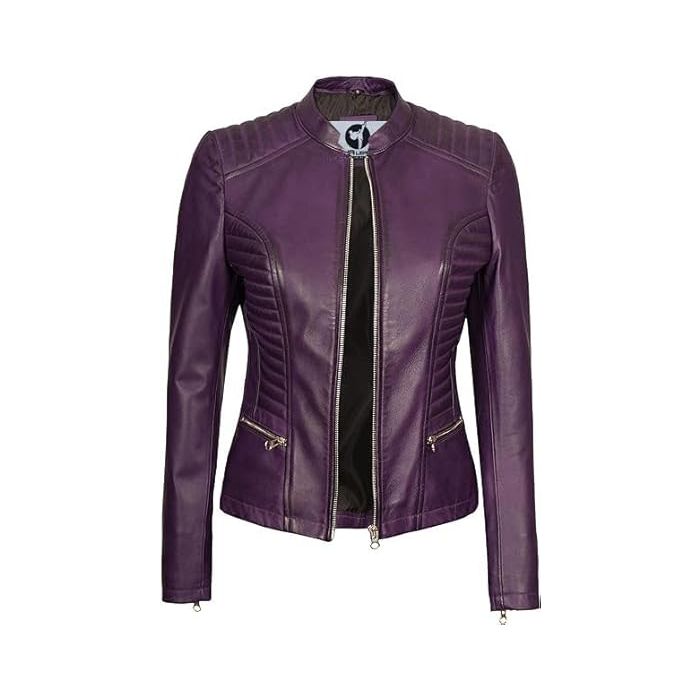 Real Lambskin Café Racer Style Fashion Jacket-Purple Texture