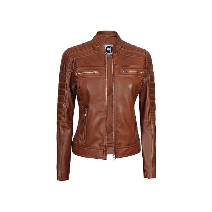 Crafted from 100% real lambskin leather. It is lined with foam polyester interior lining for enhanced comfort. this brown jacket women offers a durable yet soft feel.