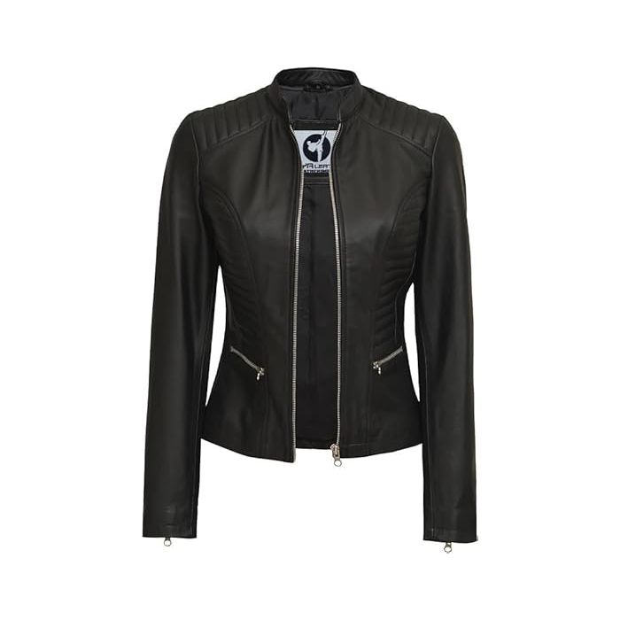 Women Real Lambskin Café Racer Style Causal And Fashion Women's Leather Jacket