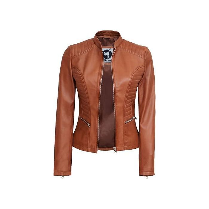 Crafted from 100% real lambskin leather. It is lined with foam polyester interior lining for enhanced comfort. this brown jacket women offers a durable yet soft feel.