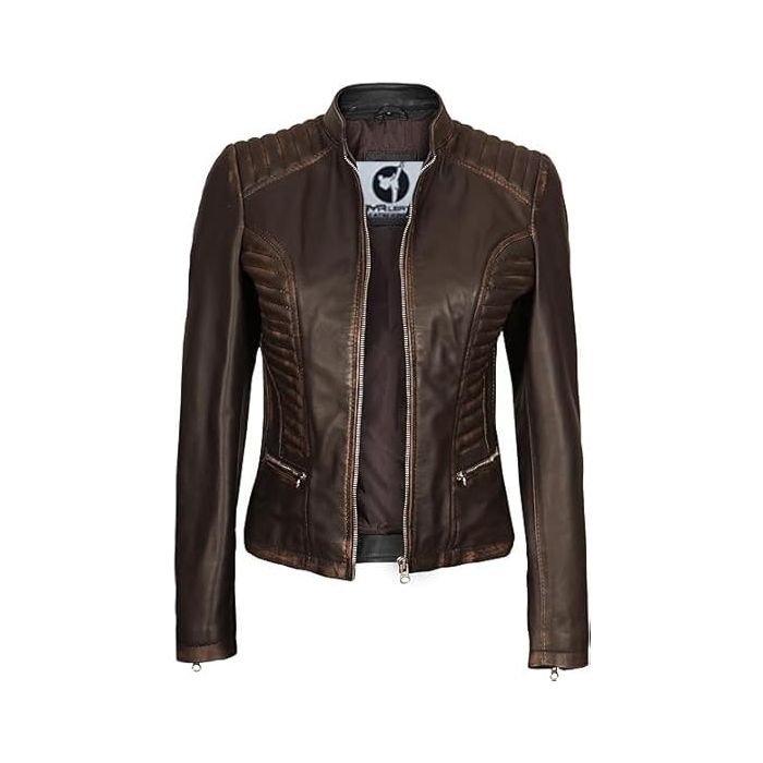 Crafted from 100% real lambskin leather. It is lined with foam polyester interior lining for enhanced comfort. this brown jacket women offers a durable yet soft feel.